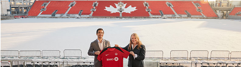 BMO est fier d’annoncer un nouveau partenariat important avec Canada Soccer à titre de partenaire officiel et exclusif de services bancaires et financiers. BMO est également le nouveau commanditaire de l’uniforme d’entraînement de l’ensemble des équipes nationales de soccer au Canada.