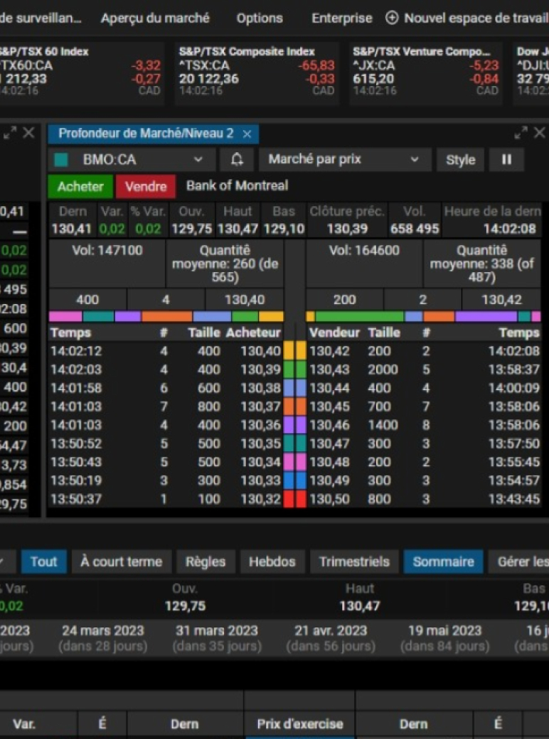 note de bas de page étoile Les données relatives au marché de niveau 2 sont uniquement accessibles par l’entremise de BMO Investisseur actif Pro (en plus du niveau 1)